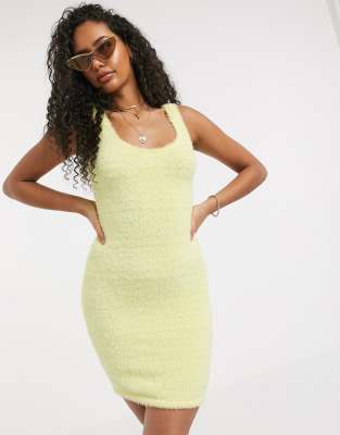 ASOS DESIGN - Robe courte pelucheuse - Jaune citron | ASOS